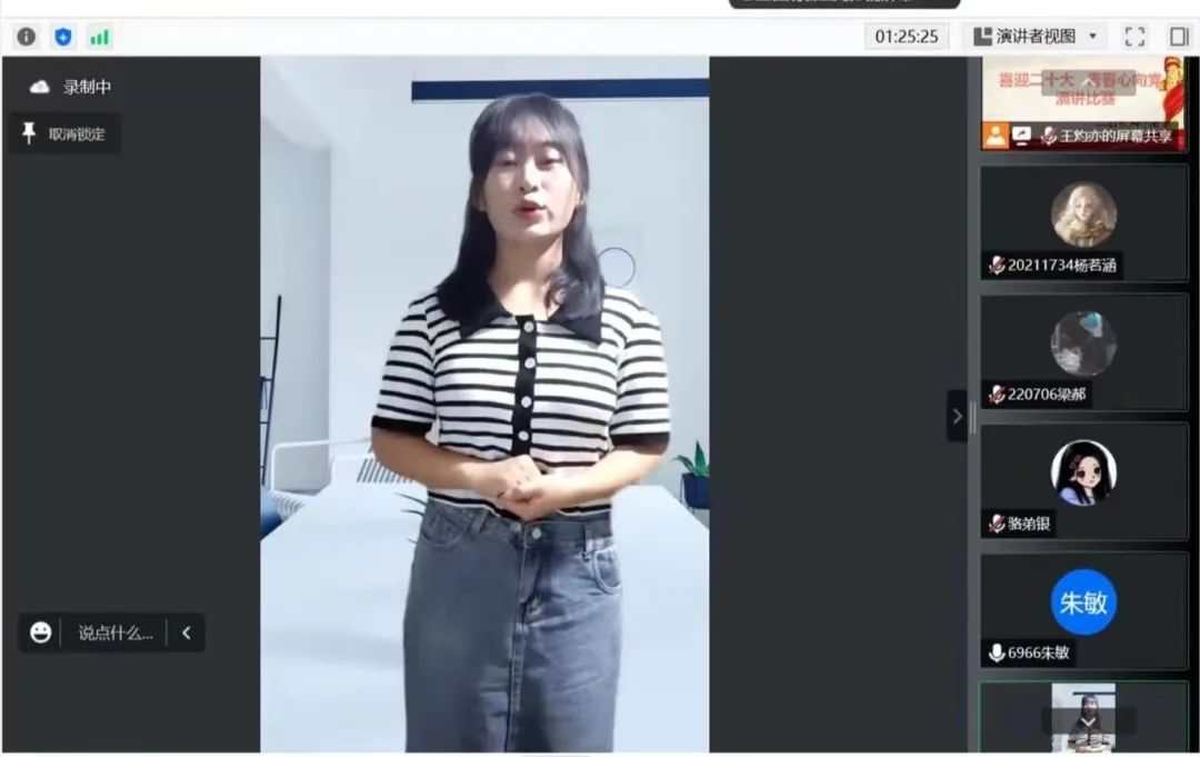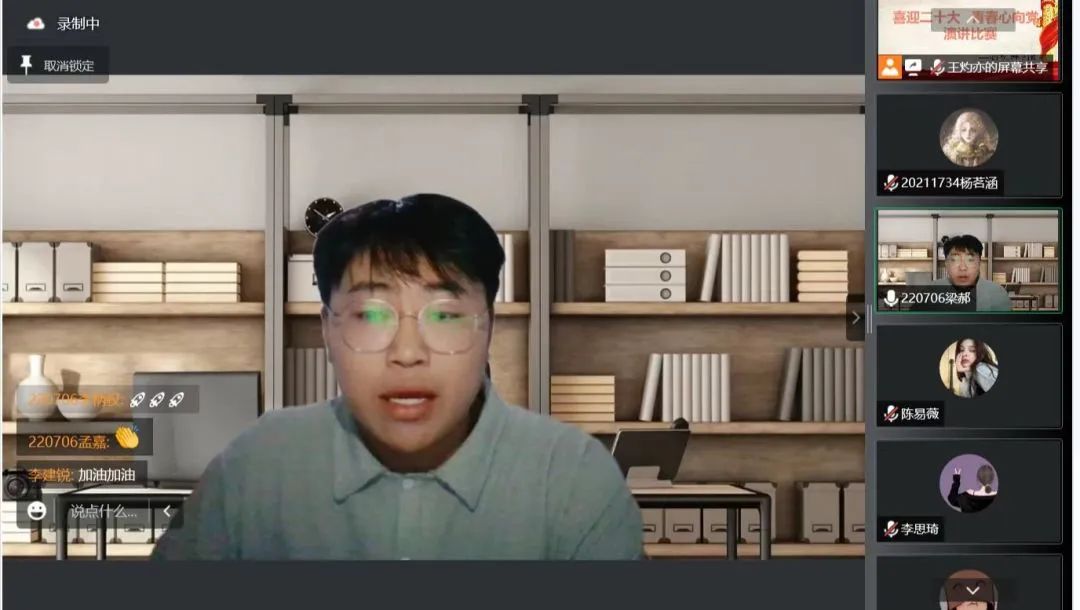 于9月12日举办“喜迎二十大·青春心向党”演讲比赛,本次比赛采取“云演讲”形式,2022届全体同学参加了此次比赛。