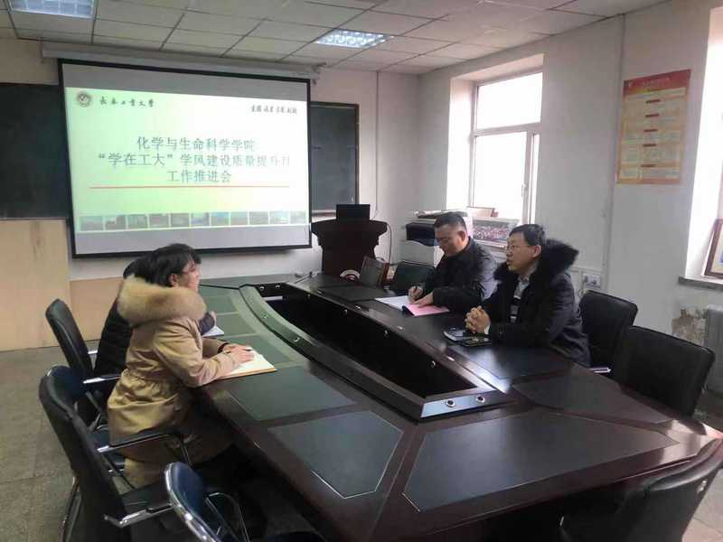 为深入贯彻落实“学在工大”学风建设质量提升月工作要求,对主题活动中发现的问题立行立改,进一步加强学院学风建设,不断提高人才培养质量,11月26日,学院在党员活动室召开“学在工大”学风建设质量提升月工作推进会。院党委副书记徐秉锋,团委书记张鹏,辅导员张烨、侯天放出席会议。