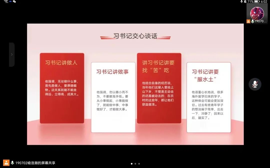 于5月30日,通过网络会议的形式就《习近平与大学生朋友们》专题召开了交流分享会议,全体团委学生参与了此次会议。