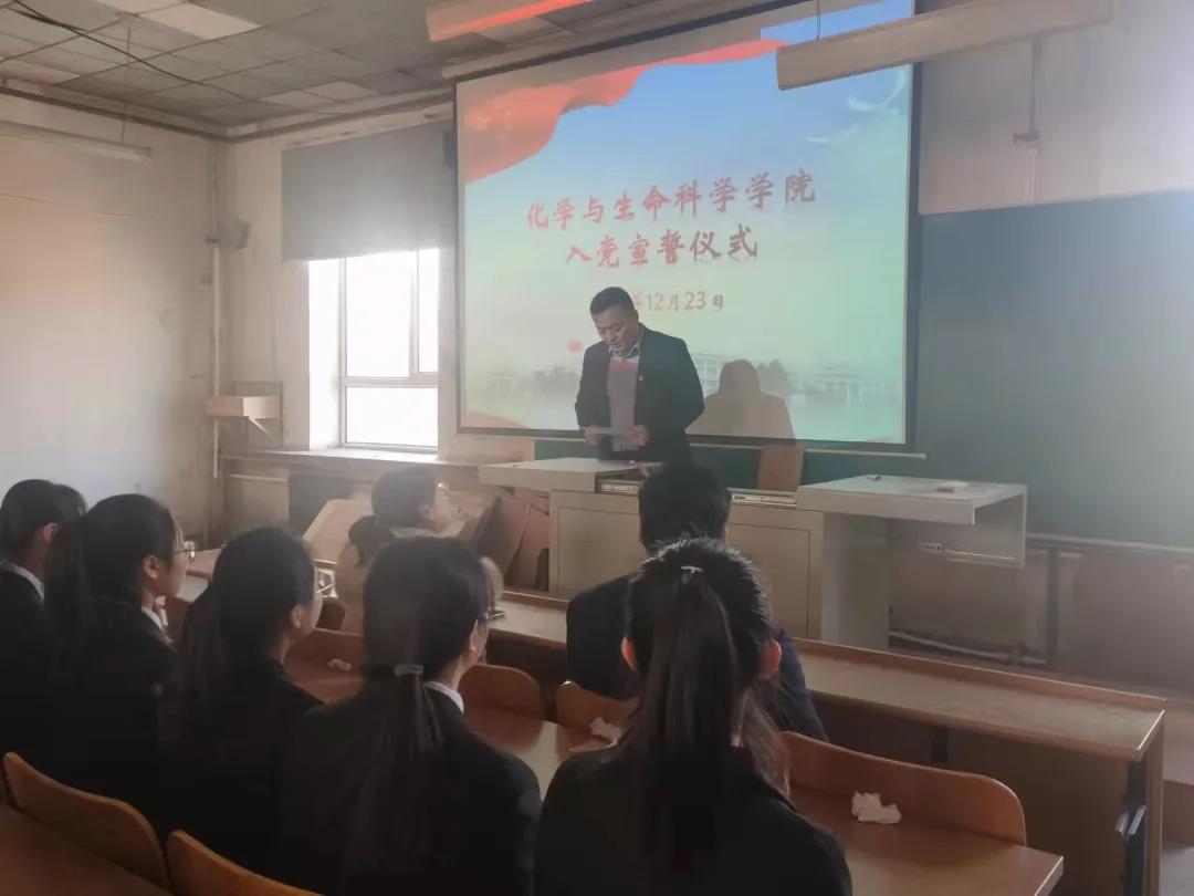 在材料楼301教室举行隆重的入党宣誓仪式。党委副书记徐秉锋、团委书记张鹏、研究生党支部书记张烨、学生党支部书记侯天放出席了此次活动,全体预备党员参加了此次活动。