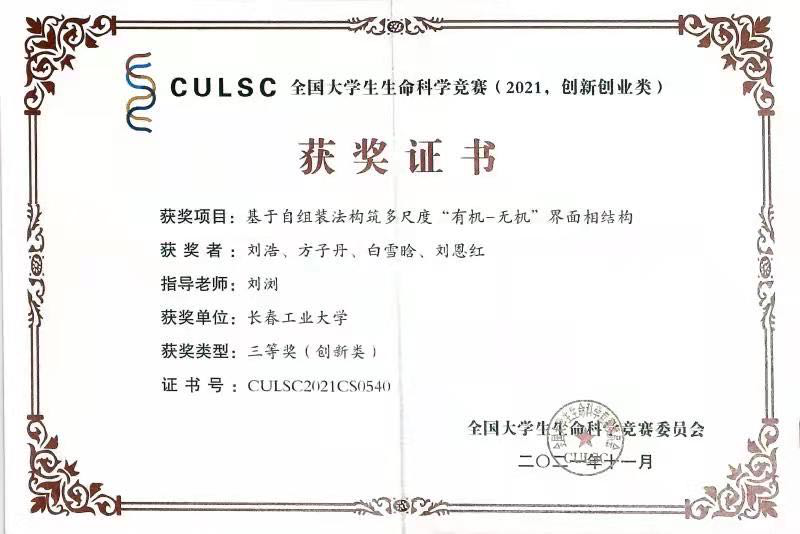 化学专业2023级硕士研究生,学院230801班班长。学院第十九届学生会秘书长、生活部部长。吉林省优秀大学生(实践专项),吉林省高校省级优秀大学生,吉林省大学生自强之星,长春市向上向善好青年。在校期间多次以项目负责人身份参加挑战杯全国大学生课外学术科技作品竞赛、全国生命科学竞赛、互联网等科创竞赛,累计荣获国家级奖项6项、省级奖项6项。在国际复合材料领域著名期刊发表论文3篇,申请国家发明专利5项。在校期间多次投身新冠疫情防控志愿服务,荣获快看漫画