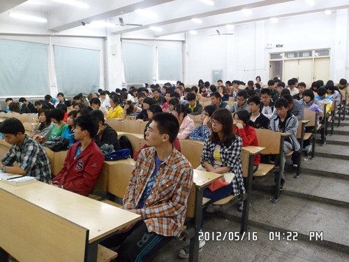 于5月16日下午四时在综合楼二楼召开了入党里理论学习报告会。学院学生党支部书记于伟,校学生会副主席王路,院团委副书记哈琳丹妮应邀出席。参加本次报告会的还有大一全体同学。
