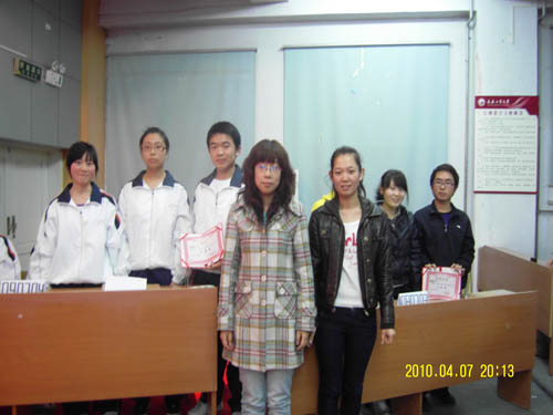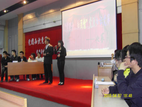 在主持人宣读完比赛规则后,各参赛队间展开了激烈的角逐。在前两轮的填空题和是非题的比拼中,各代表队选手沉着应答,冷静思考,均以满分的成绩取得开门红,精彩的作答赢得现场观众的阵阵掌声。然而,接下来的问答题则将比分暂时拉开,现场气氛紧张而热烈。在随后的观众互动环节中,优美而熟悉的党团歌曲暂时缓和了现场紧张的气氛,同时也将比分进一步拉开。在最后的问答题环节中,各参赛选手认真作答,你争我赶,比分被一次次刷新。最终090704班以总分473的绝对优势夺得了本次比赛的冠军。