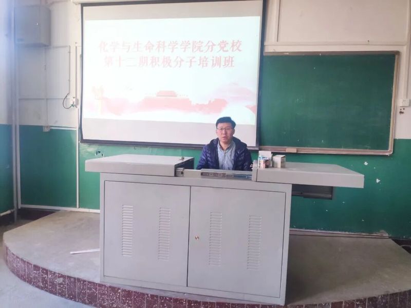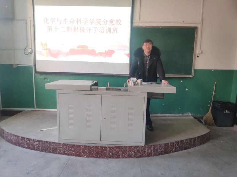 党委书记于洪,党委副书记徐秉锋主讲,入党积极分子参与党课。