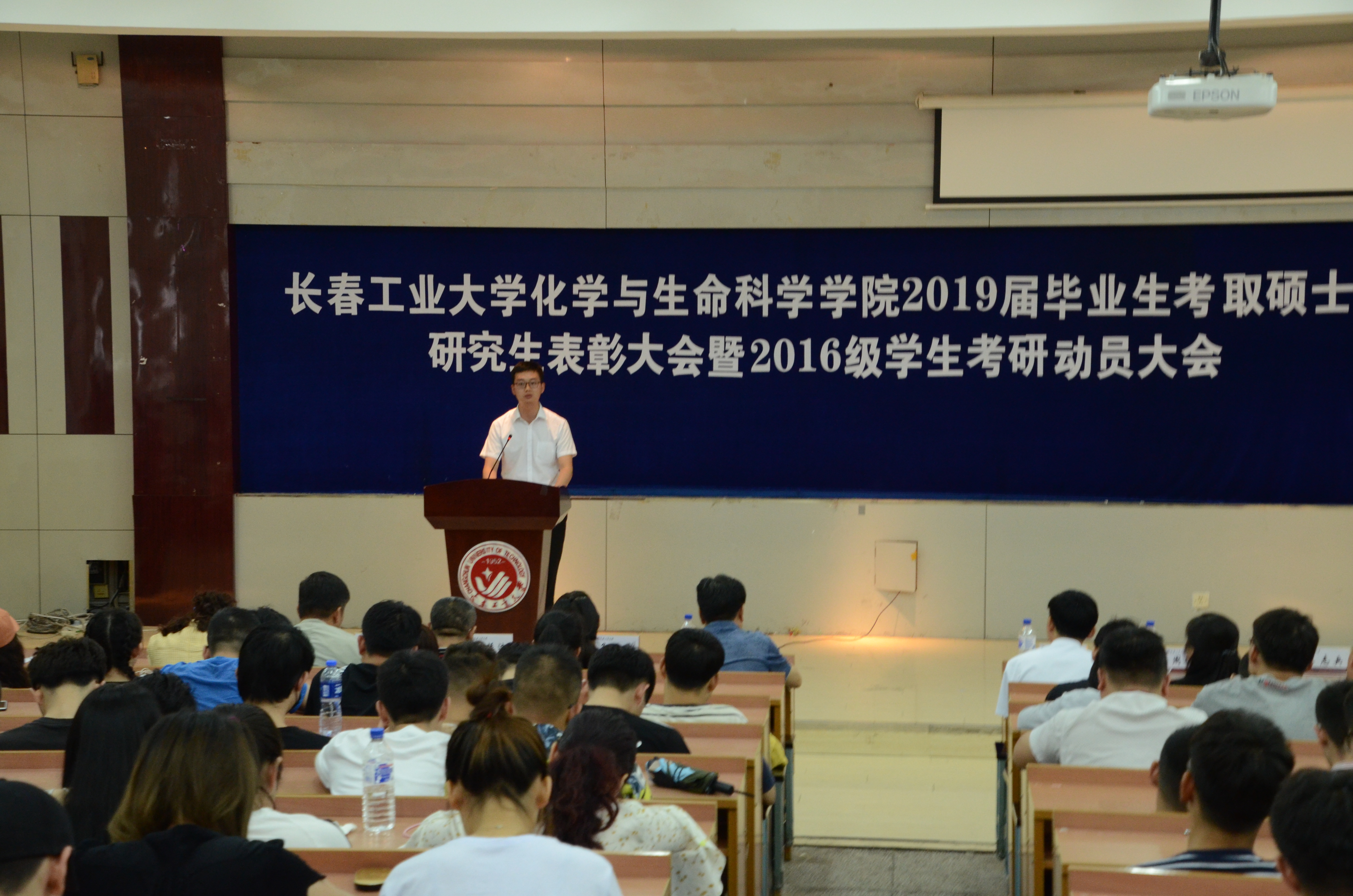 化学有生命科学学院关于表彰2019届毕业生考取硕士研究生的决定》。与会领导为受表彰学生颁奖,丁鹏等5名优秀毕业生代表分享了考研经验。