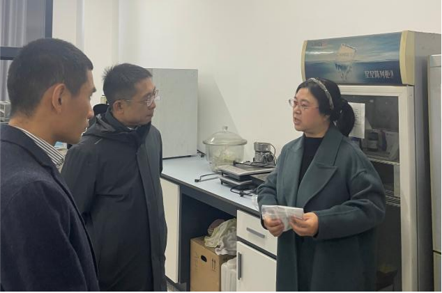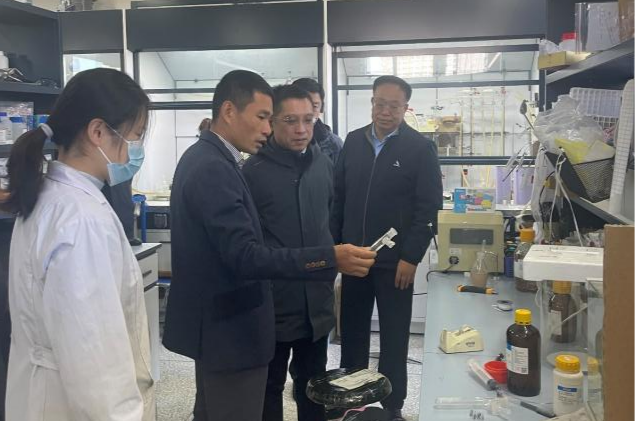 调研中,付跃刚校长在学院班子成员陪同下,实地走访了学院科研工作室和教学实验室,与张海悦、张凤清、殷玉和等一线教学科研人员亲切交谈,深入了解实验室运行及科研工作开展情况,并就碳纤维及其助剂、人参特产开发、生物医药等领域的成果转化、市场应用前景等与教师进行了交流。