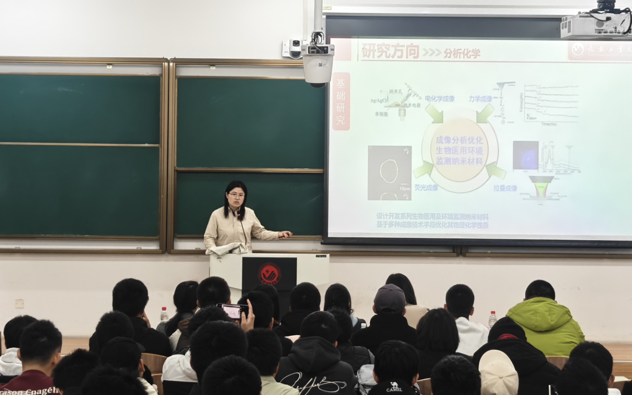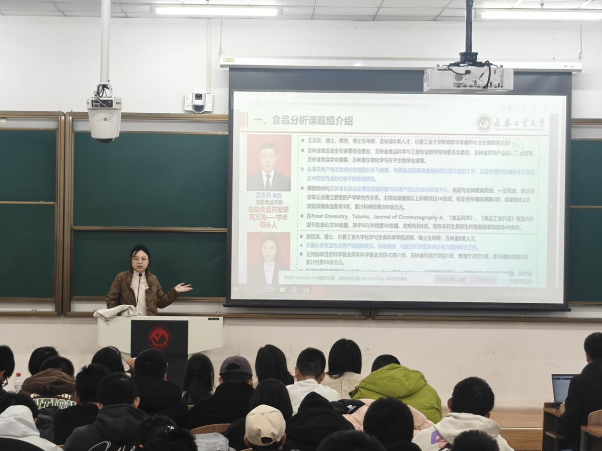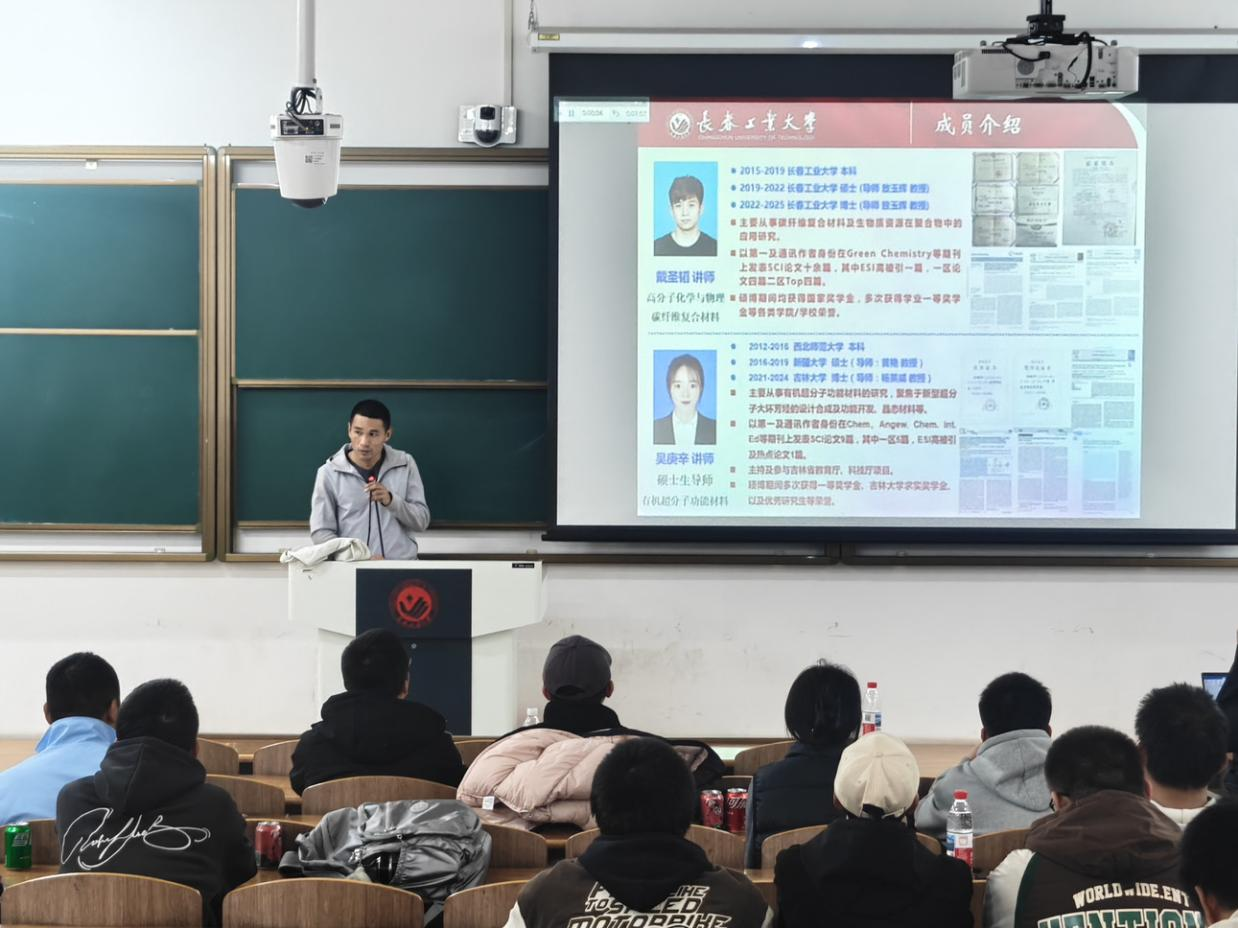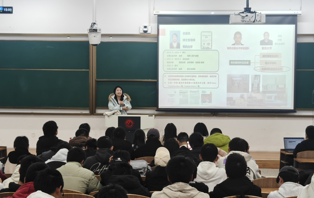 活动中,学院教师依次登台,围绕各自科研团队的研究领域、核心课题、技术平台及成果转化等内容展开详细介绍,同时分享个人研究方向与学术特色,涵盖化学合成、生物制药、环境监测、分子生物学等多个前沿领域。讲解过程中,教师们语言凝练、重点突出,既展现了科研工作的专业性与创新性,也为学子们搭建了与导师面对面沟通的桥梁。