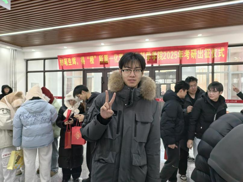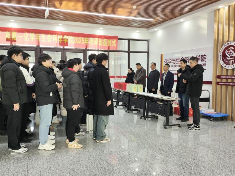 在北湖化学楼一楼隆重举行2025年考研出征仪式。本次活动由2022级辅导员孙铭老师主持,学院党委书记朱兴国、副院长刘宇、党委副书记郑岩、副院长肖凌寒、各年级辅导员老师和全体考研学子齐聚一堂,共赴这场充满祝福与力量的出征礼。