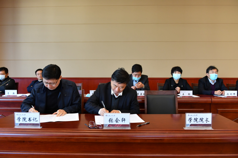 党委书记于洪签订了2021届毕业就业目标责任书。