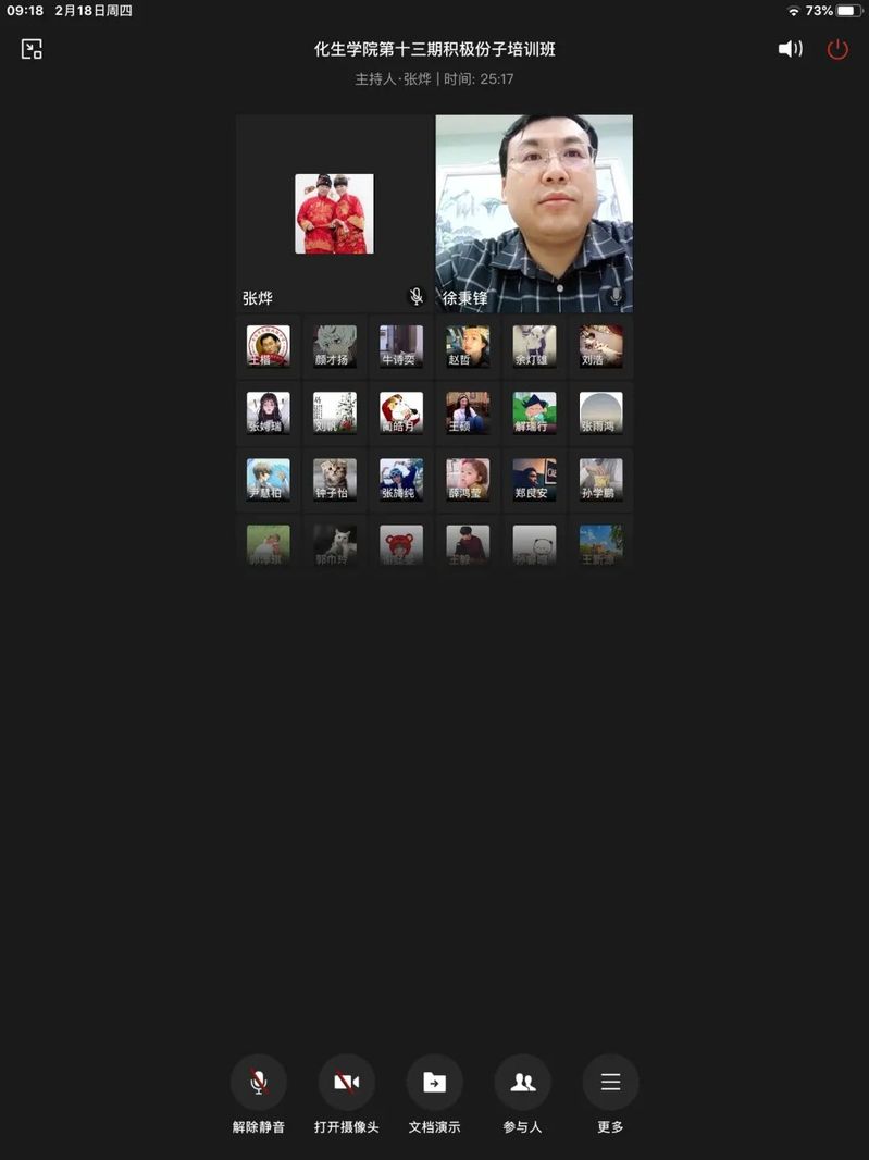 新闻网讯(通讯员:臧颖)为进一步加强入党积极分子的培养、教育和考察,提高入党积极分子的思想政治素质。2月18日,利用网上会议模式,快看漫画 第十三期入党积极分子培训班成功举行开班仪式。院党委副书记徐秉锋、团委书记张鹏、研究生党支部书记张烨、学生党支部书记侯天放出席此次会议,快看漫画 入党积极分子参与了此次会议。