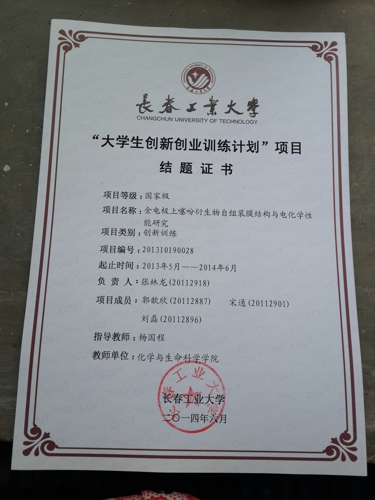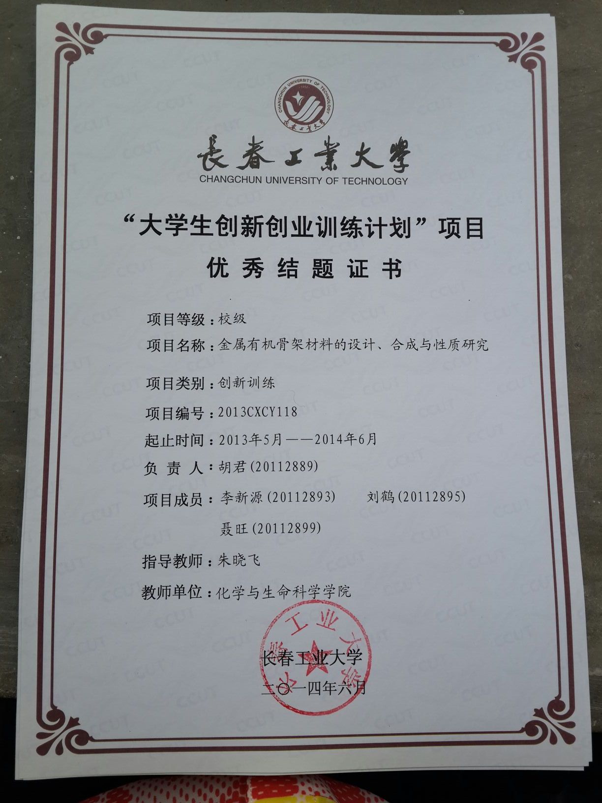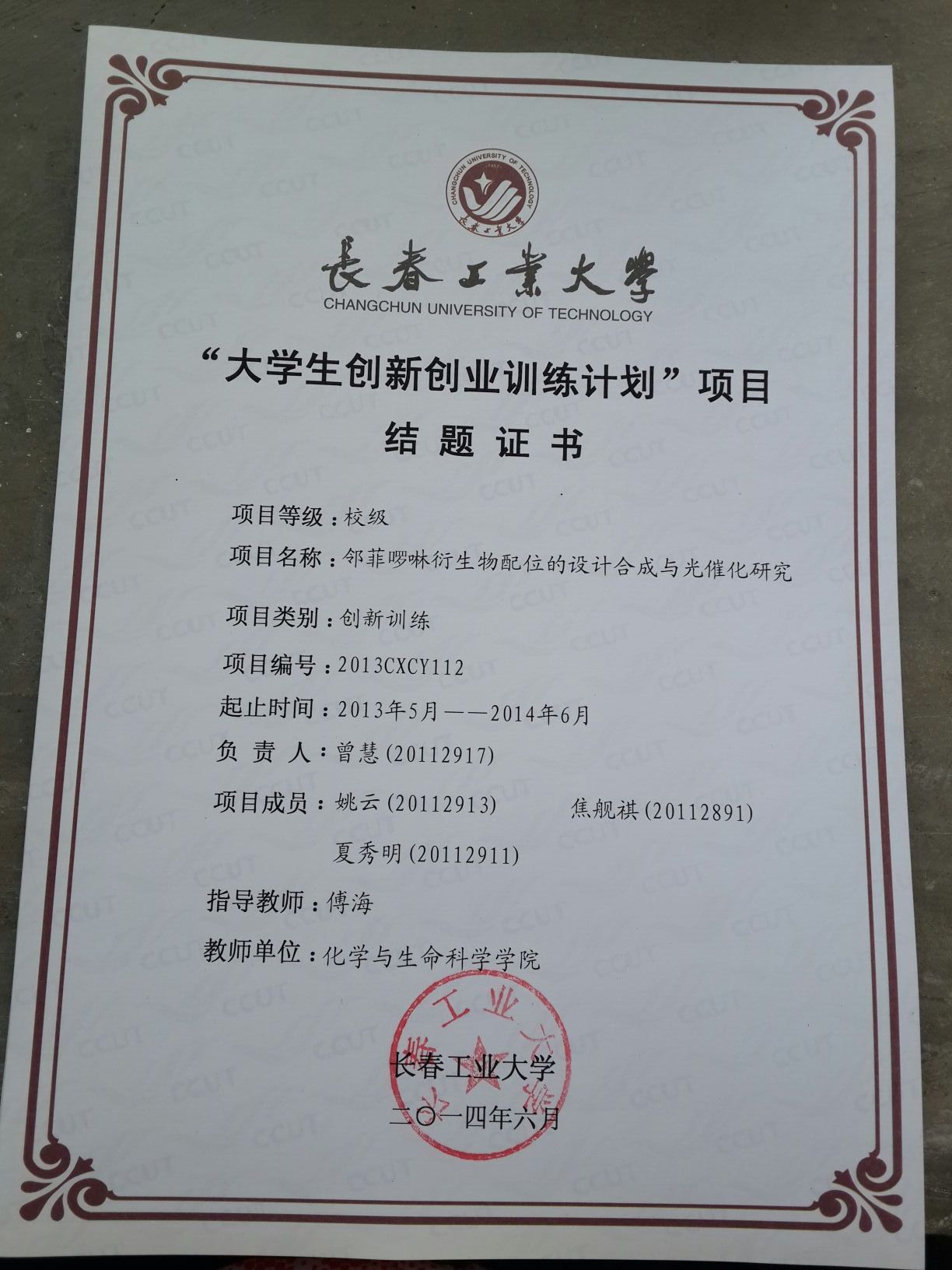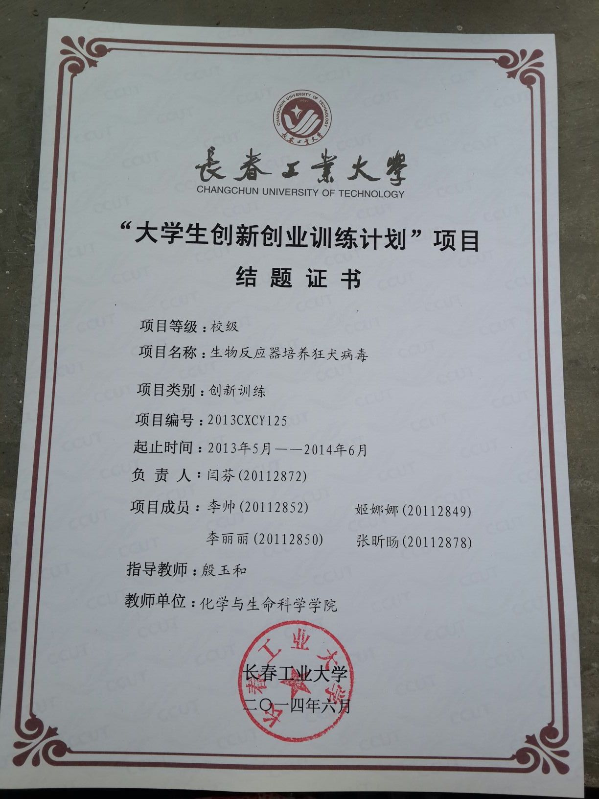 2013-2014大学生创新创业训练计划结题证书
