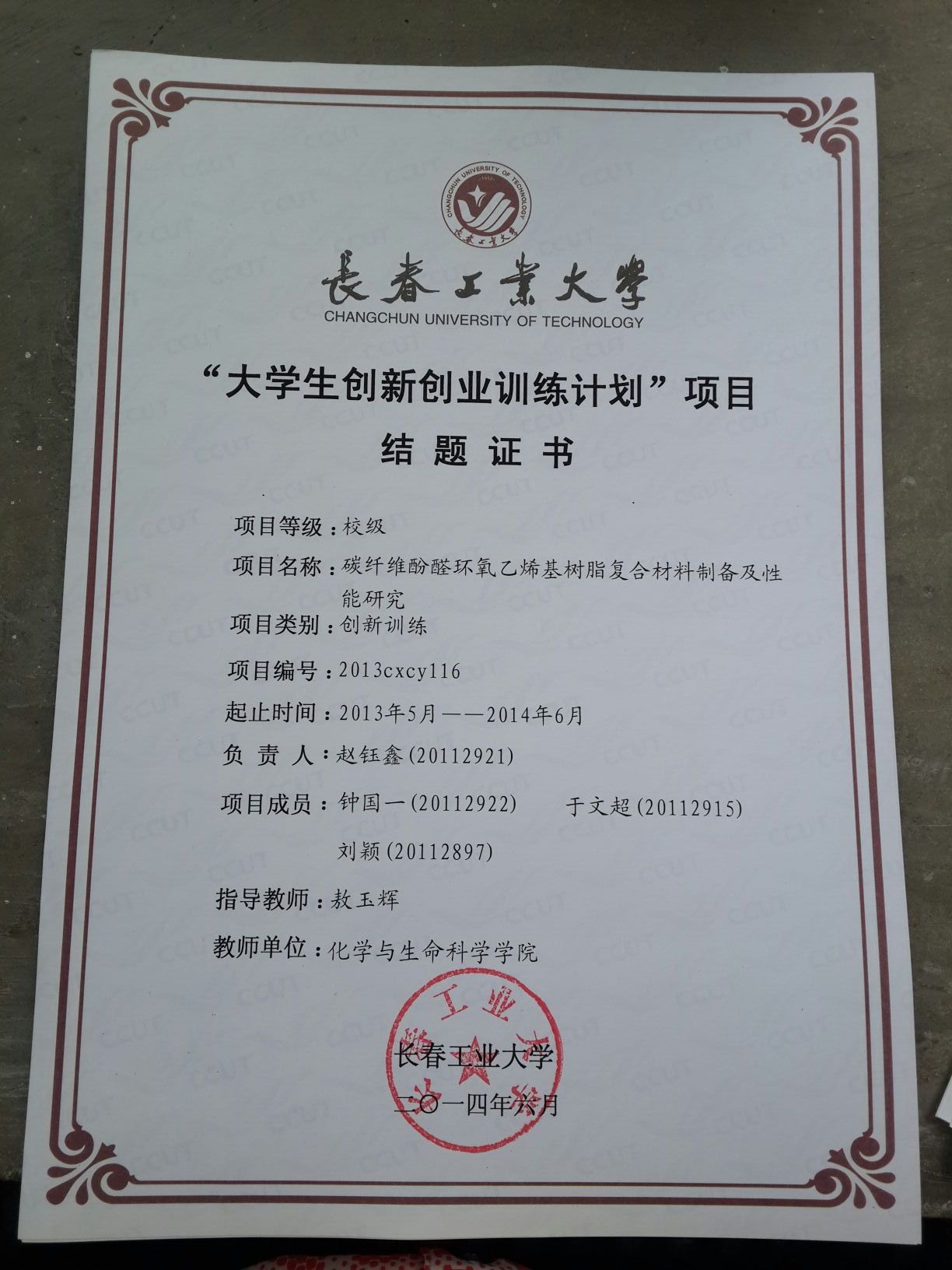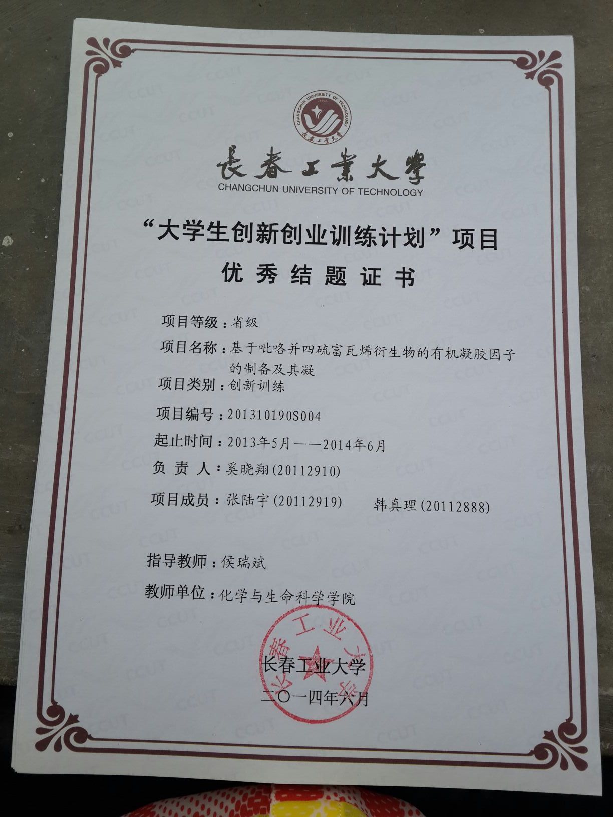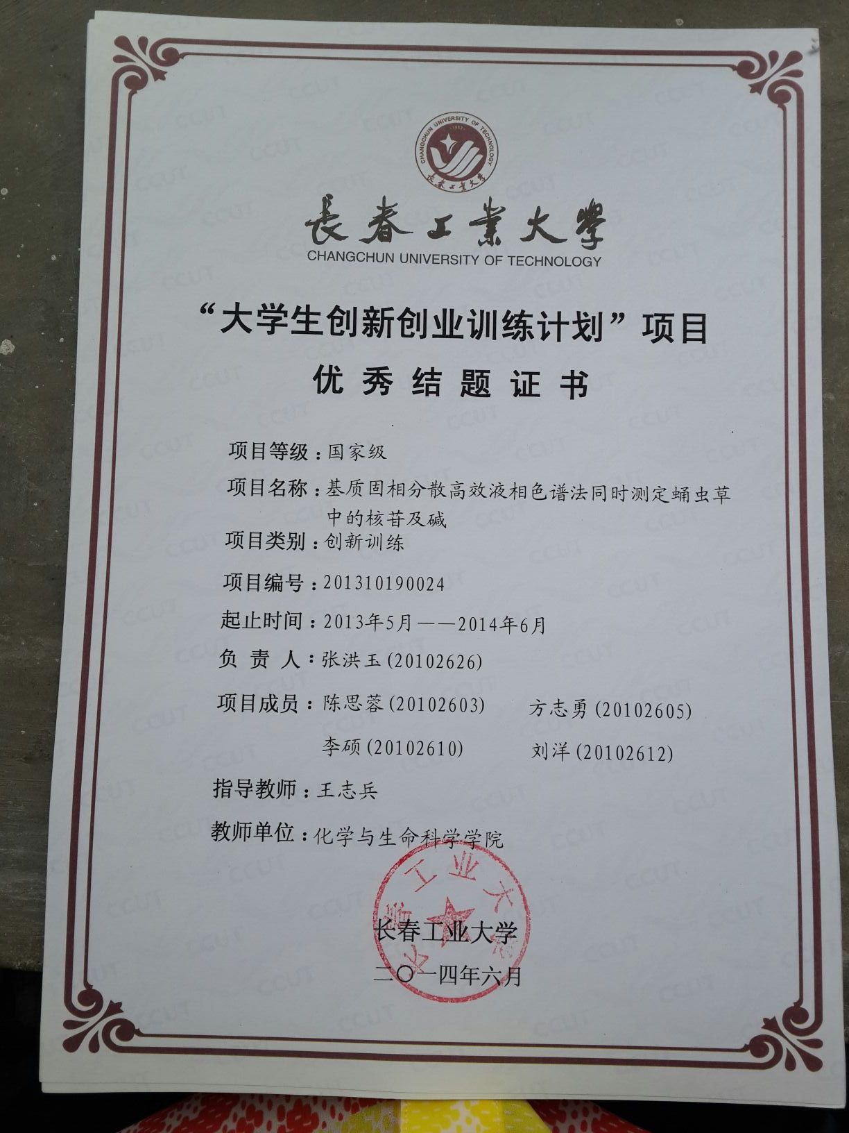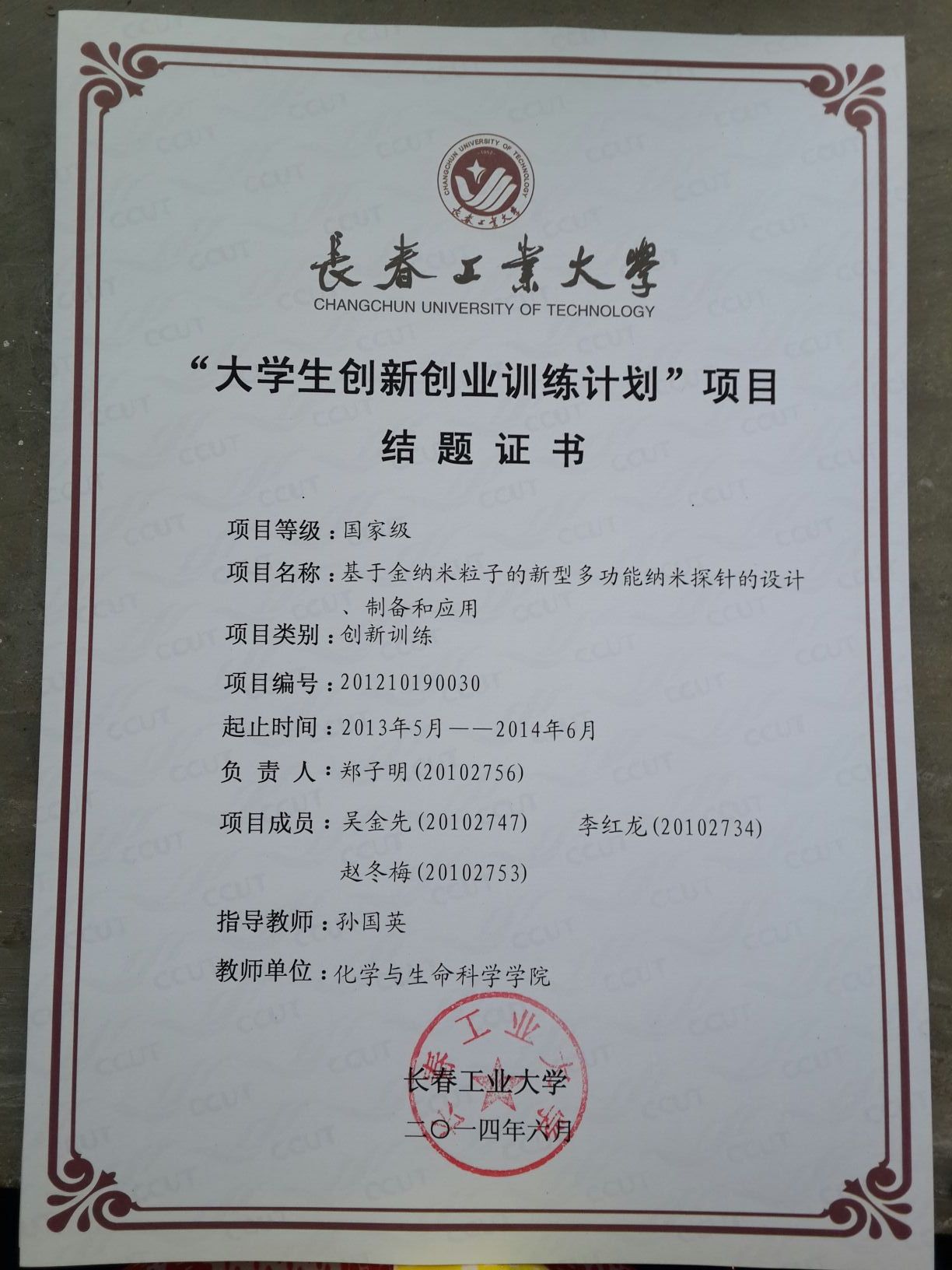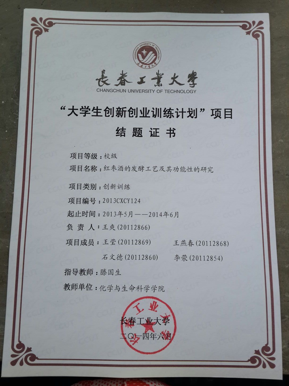 2013-2014大学生创新创业训练计划结题证书
