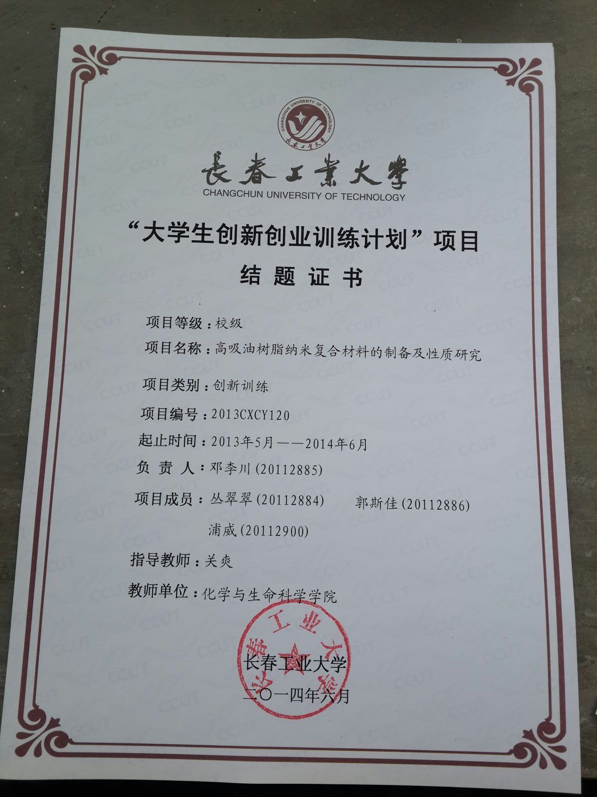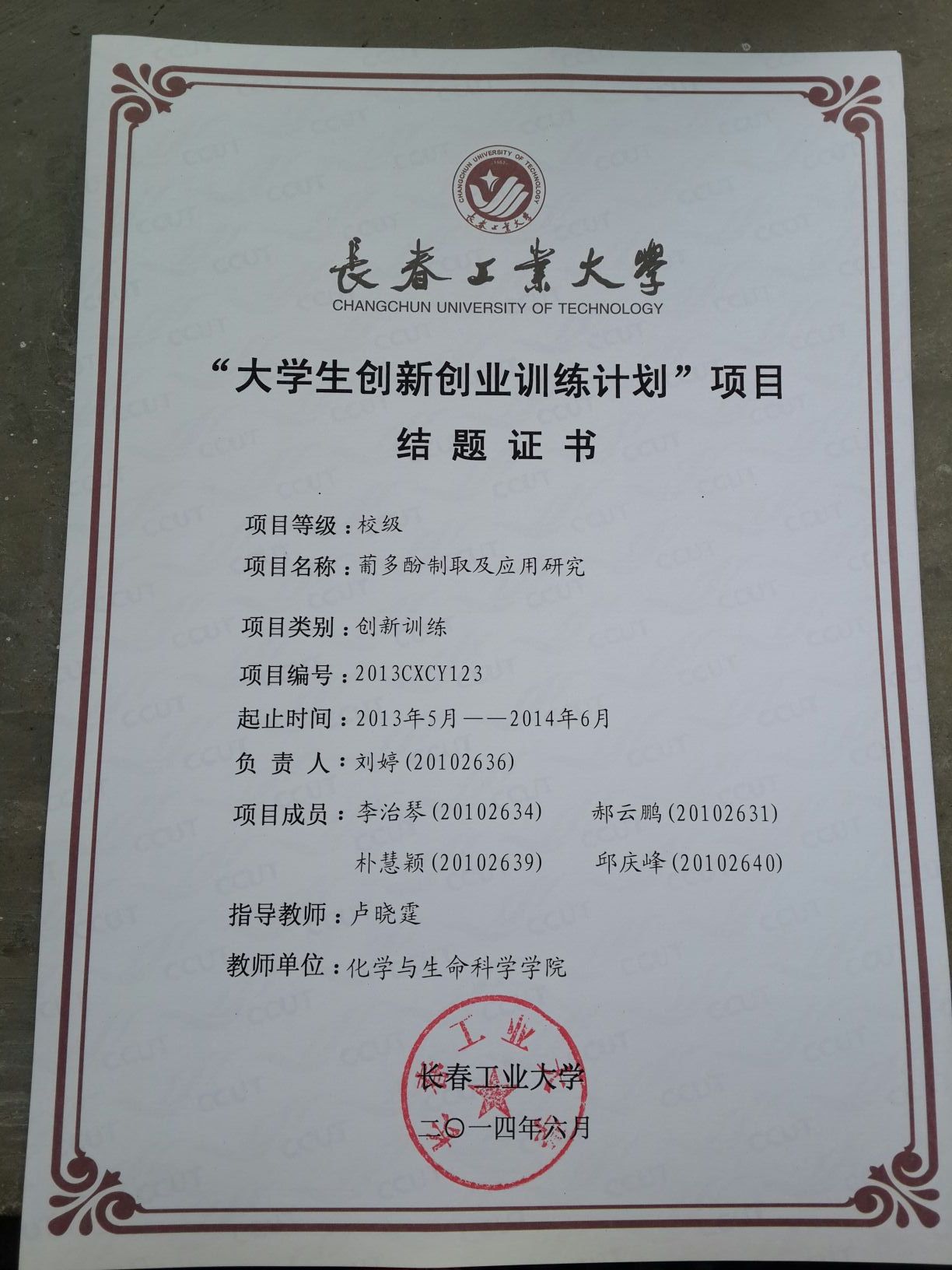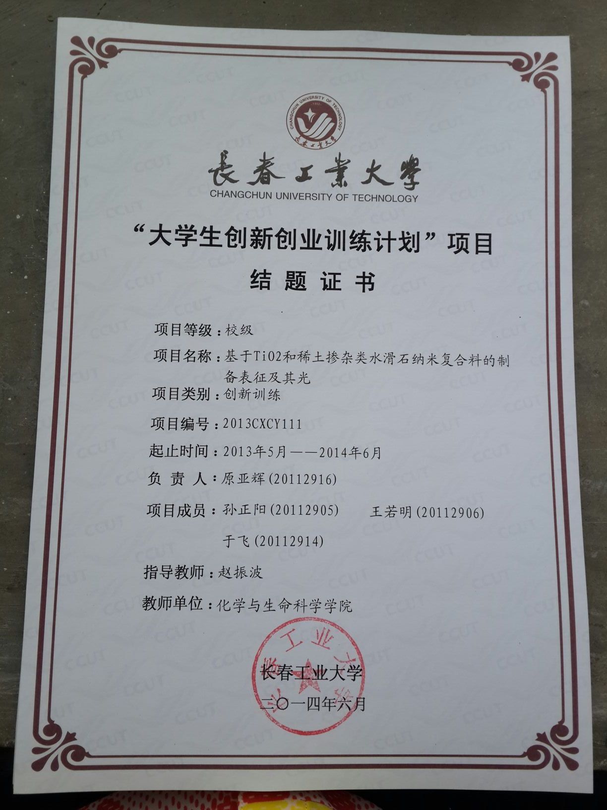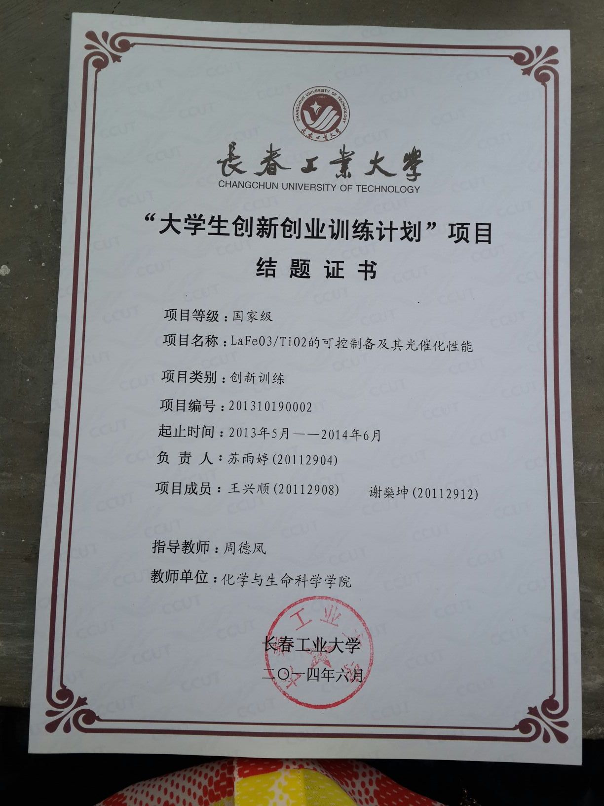 2013-2014大学生创新创业训练计划结题证书