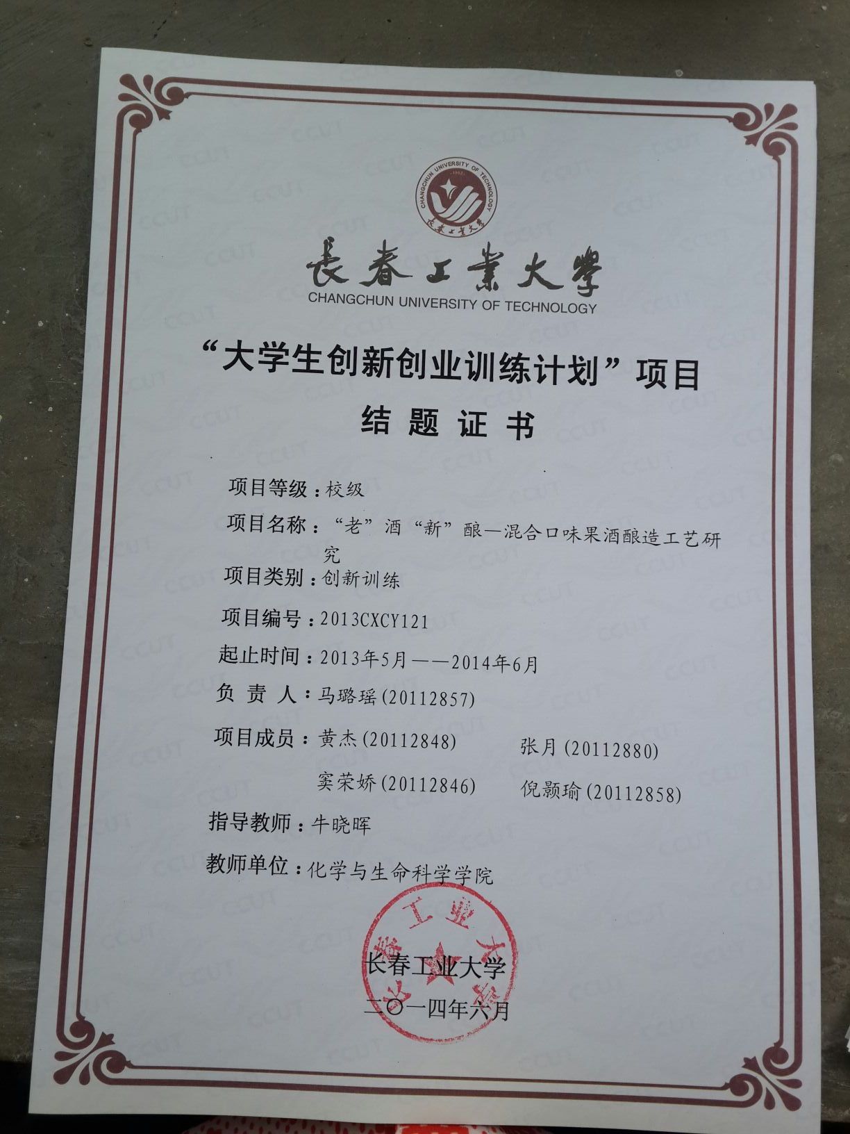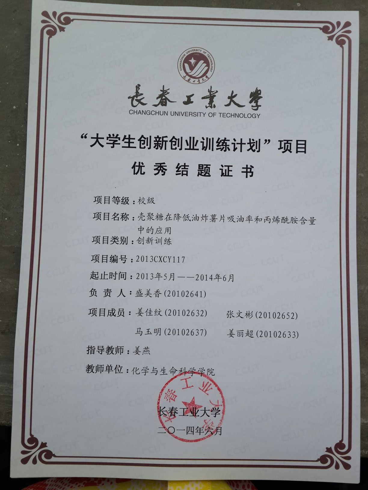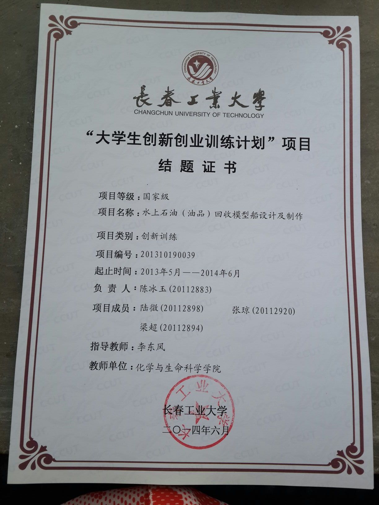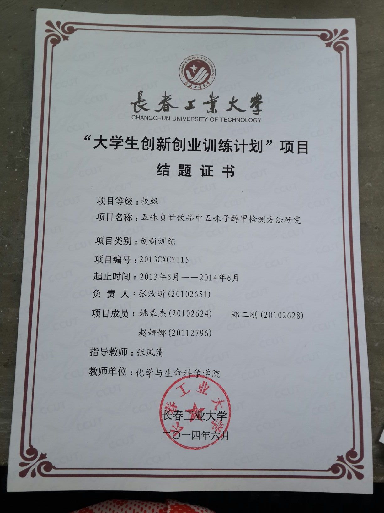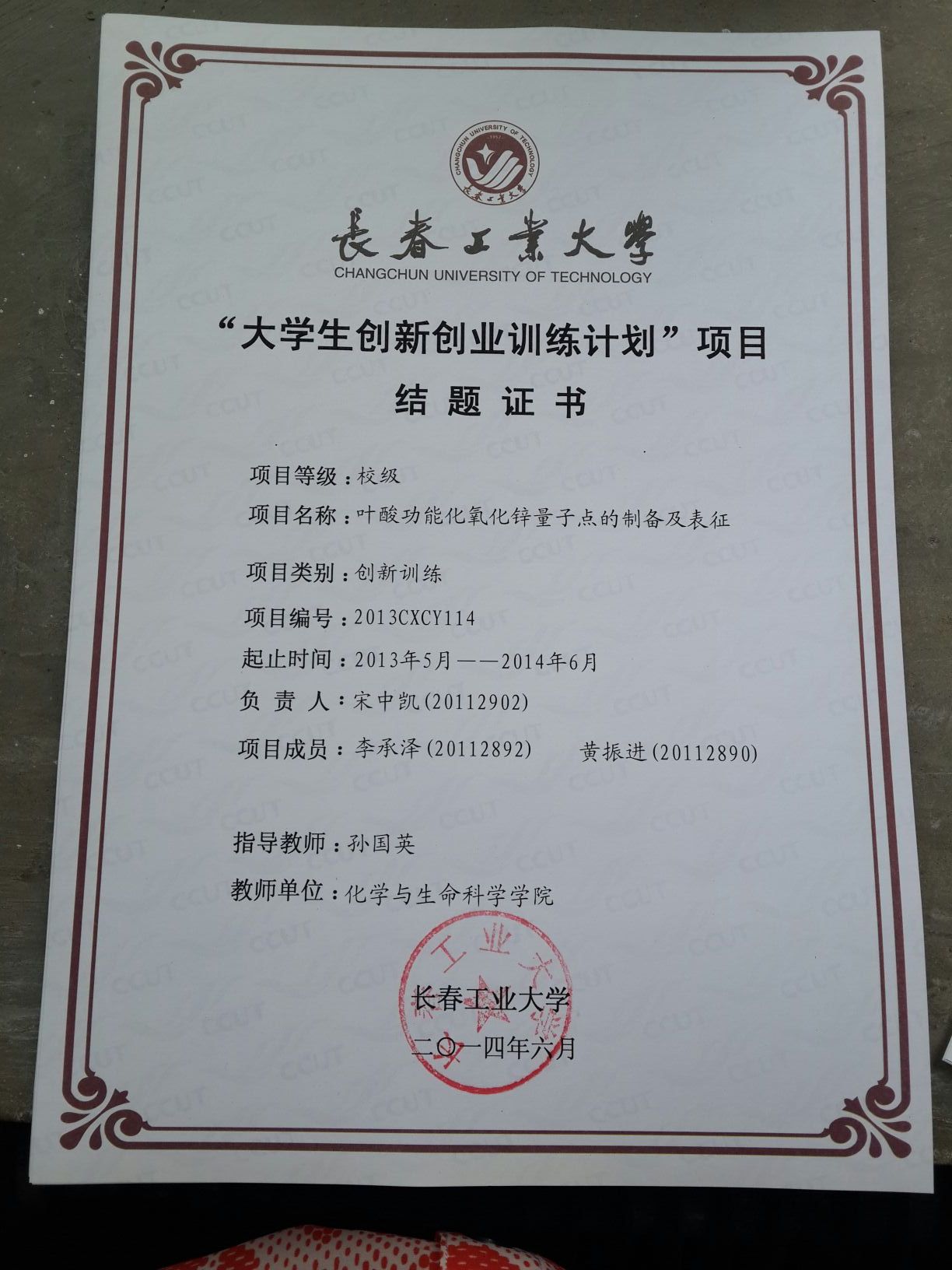 2013-2014大学生创新创业训练计划结题证书