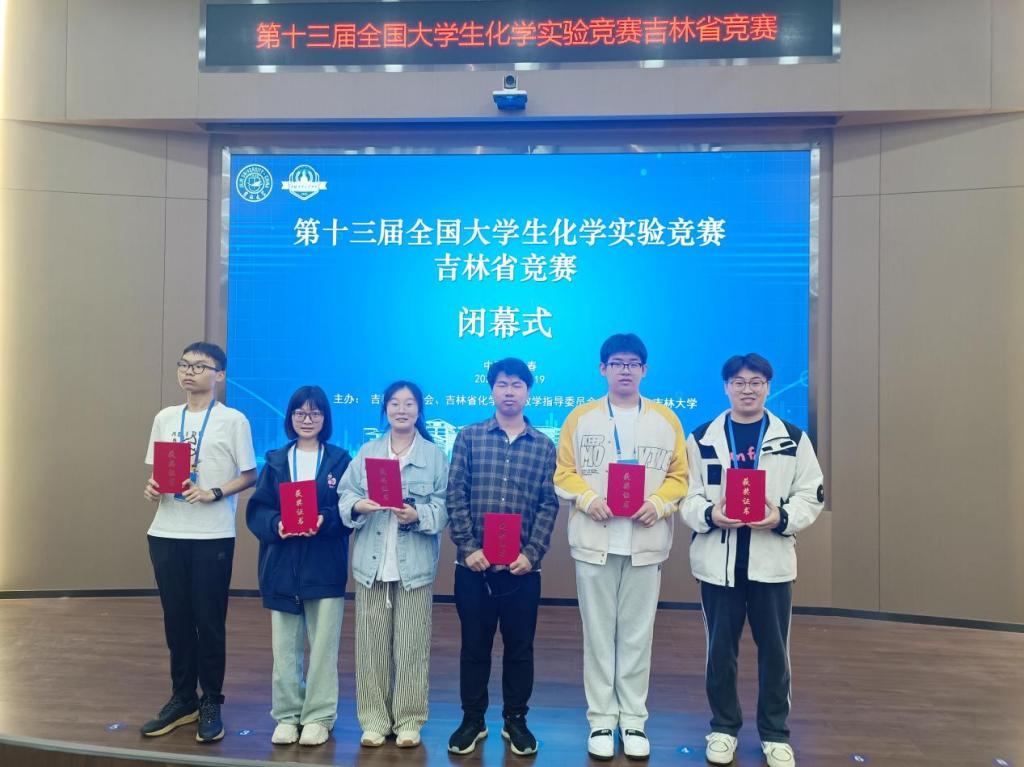 本网讯(通讯员:关爽)近日,第十三届全国大学生化学实验竞赛吉林省竞赛在吉林大学举办。化学实验竞赛包括初赛和复赛两个环节。其中,初赛为化学实验知识竞赛;初赛优胜者进入复赛环节,复赛为化学实验操作竞赛。省内包括东北师范大学、延边大学、东北电力大学等多所高校参赛。快看漫画 快看漫画 教师关爽、武原琪指导快看漫画 6名同学参加比赛,全部获奖,成绩优异。其中,22级周靖林同学获得一等奖,22级李威萱,韩旭荣,张伟益,梁郝四名同学获得二等奖,21级崔佳雪同学获得三等奖。获得一等奖的周靖林同学将代表吉林省参加第十三届全国大学生化学实验竞赛(省赛选拔5名同学参加国赛)。