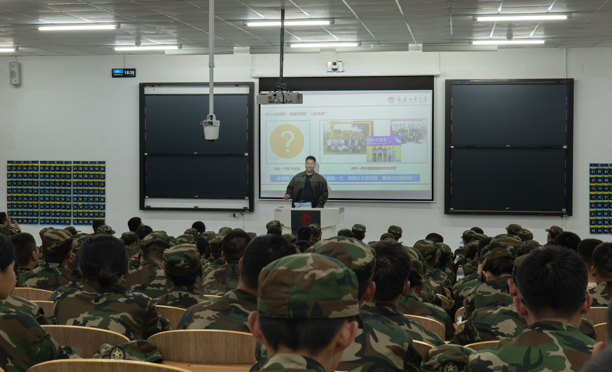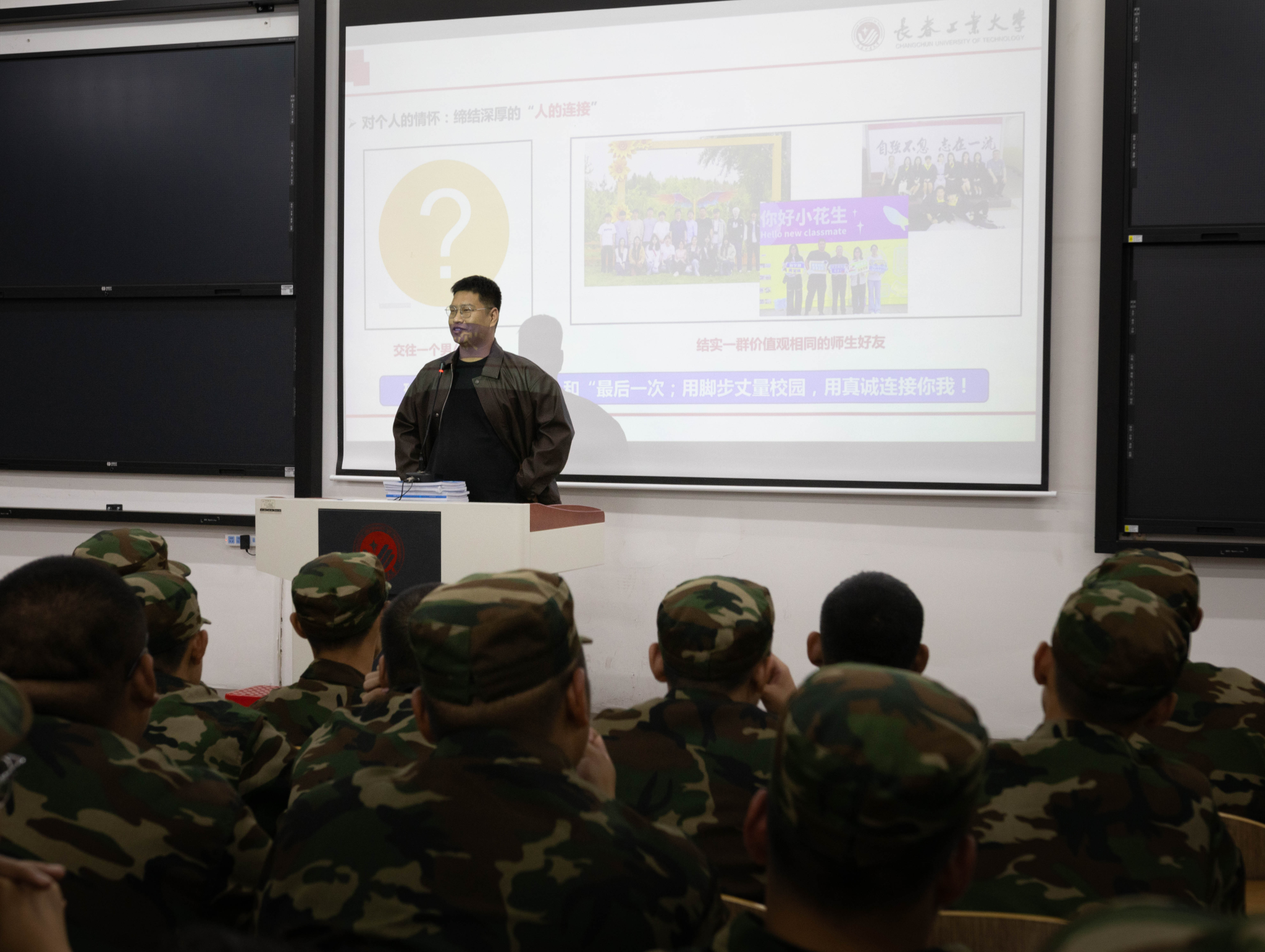 讲座开始,刘浩学长进行了个人介绍,他分享了自己成长为如今在科研领域初露锋芒的博士研究生的心路历程。谈及成功的秘诀,刘浩强调了“‘情怀’是成功的关键”,要珍惜每一个“第一次”和“最后一次;用脚步丈量校园,用真诚连接你我!紧接着,刘浩指出“‘学习’是大学的根本任务”。他提醒新生们,大学不仅是知识的海洋,更是自我提升和能力锻炼的最佳平台。在这里,不仅要学好专业知识,更要学会如何学习——掌握高效的学习方法,培养批判性思维和解决问题的能力。对于“科创”,刘浩更是将其视为个人发展的根基。他强调,科技创新是推动社会进步的重要力量,作为未来的科技工作者,新生们应当积极参与各类科研活动,勇于尝试新方法、新技术,不断探索未知领域。在讲座的尾声,刘浩向全体新生寄予了殷切的期望和美好的祝愿。他说:“在大学里找到真正的自己,要拥有快乐、健康和贡献社会的能力。