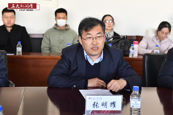 就政企产学研合作事宜进行座谈交流。学校党委常委、副校长张明耀、科研处及相关学院科研院长、科研人员参加会议。