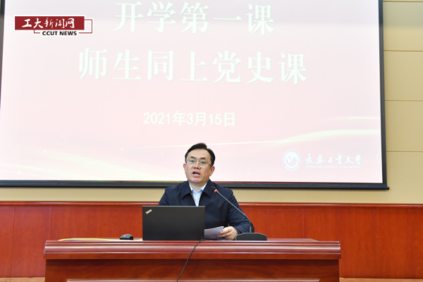 党史课开课之前,党委书记王忠讲话。他强调,今年是中国共产党成立100周年,以习近平同志为核心的党中央立足党的百年新起点、统筹“两个大局”,做出在全党开展党史学习教育的重大决策,恰逢其时,意义深远。上好党史课是认真贯彻落实中央决策部署的重要举措、是引导广大师生明理增信崇德力行的现实需求、是培养担当民族复兴大任时代新人的必然选择。今年是“十四五”开局之年,是全面建设社会主义现代化国家的新起点,也是学校全力加快特色高水平应用研究型大学建设的关键之年。要把党史学习教育同广大同学成长成才、同学校发展建设紧密结合起来,贯穿始终、融入日常、抓在经常,让党史学习教育成为指导学生学习成长、党员干部建功立业的指南针、助推器。