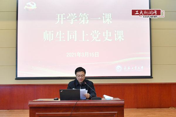 新闻网讯(记者 侯姗姗315日,学校返校开课第一天,为深入学习贯彻落实习近平总书记关于“四史”的重要论述、习近平总书记在党史学习教育动员大会上的重要讲话精神,学校党委研究决定,采取线上线下相结合、主会场分会场同步直播的方式开展开学第一课—“师生同上党史课”活动,郑重拉开学校党史学习教育的大幕。三百余名师生在现场聆听,两万余名师生同时在线学习党史课。党委副书记李新主持开学第一课。