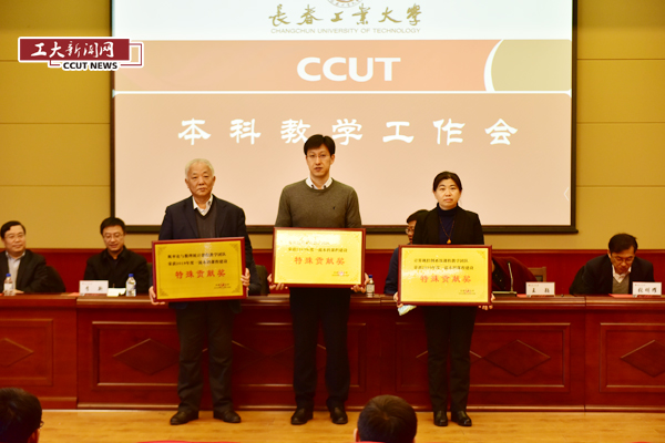 李占国宣读《关于表彰国家级、省级一流专业,国家级一流课程建设贡献奖的决定》,副校长王颖校长宣读《关于表彰2020年度教师卓越奖、优秀奖、新星奖、李成日奖教基金获得者的决定》。校领导为获奖者颁发奖牌和证书。