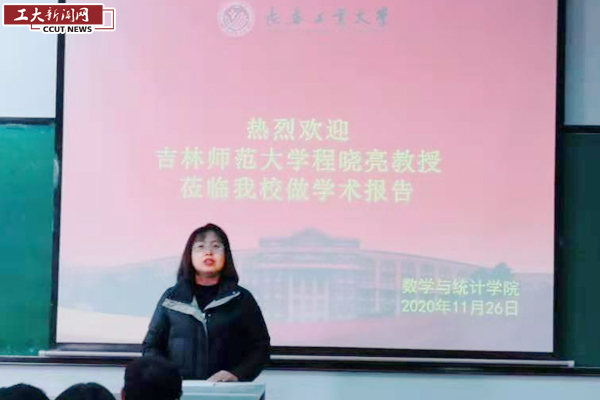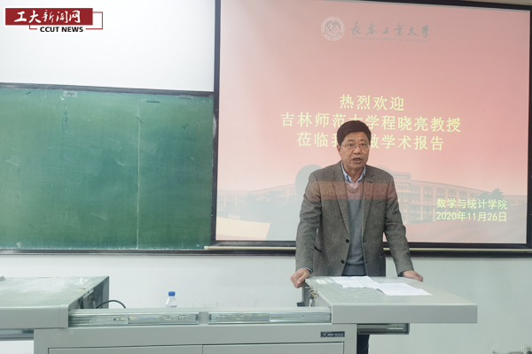 新闻网讯(通讯员 李纯净 )为贯彻落实习近平总书记关于教育的重要论述和全国教育大会精神,进一步构建德智体美劳全面培养的教育体系,扎实推进新时代学校美育工作。11月26日,学校邀请吉林师范大学数学学院院长程晓亮教授作《文史哲与艺术中的数学》美育专题学术报告。副校长李占国出席报告会并致辞。招生办公室主任兼教务处副处长杜娟主持报告会。