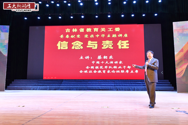 蔡朝东结合历史和现实,用大量生动的实事和案例,生动诠释了“中国梦”基本内涵和精神实质,阐述了当代大学生应有的信念与责任,他鼓励大学生们树立成才报国的远大志向,做好自己人生价值的答卷。报告生动精彩、扣人心弦,震撼人心、催人奋进、充满了正能量,给广大师生们带来了一场鲜活的爱国主义教育,进一步坚定了师生的理想信念和担当责任意识。