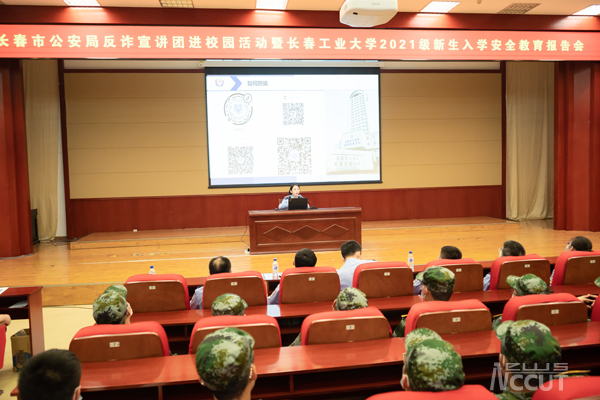新闻网讯(通讯员 姜延安)为进一步增强大一新生的安全防范意识,巩固和提升自我保护能力,更快更好地适应大学生活。9月16日晚,学校安全工作处在南湖校区学术报告厅设立主会场,同时在南湖校区、北湖东西校区设立19个分会场,采用线上+线下同步直播的方式对2021级5000余名新生进行了安全教育讲座。本次讲座特邀长春市公安局反诈骗中心四级警长高如月作反诈防诈安全知识专题讲座。安全处副处长卢彦伟主持报告会并为学生作校园安全讲座。