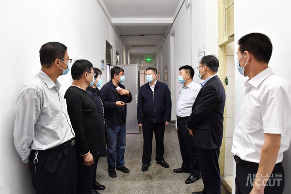 ,对学校新学期疫情防控工作进行检查督导。学校党委书记孙长智,校长张明耀,副校长王二辰,党委常委、党委宣传部部长、党委教师工作部部长王鸣晖及相关部门负责同志陪同检查。