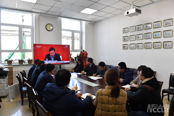 学校党政领导与所在党支部党员干部共同收看了直播。各基层党委分别以集中收看、分散收看的形式收听收看了发布会直播。